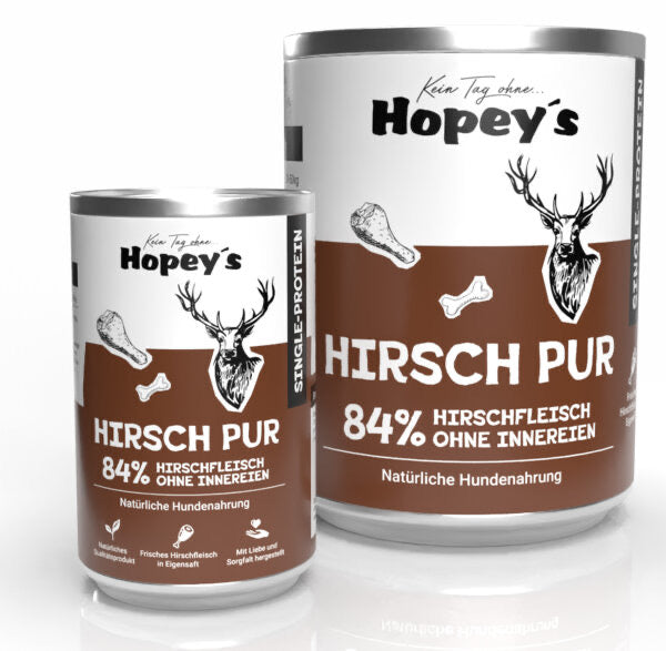 100 % Hirschfleisch (84 % Muskelfleisch, 16 % Hirschfleischbrühe)