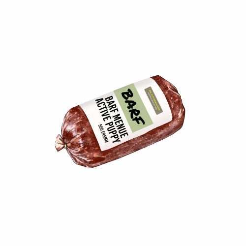 36% Rindfleisch 80/20, 20% Obst/Gemüse (fein gewolft), 15% Kalbsbrustbein (fein gewolft), 15% Herz, 10% grüner Pansen/Blättermagen, 3% Leber, 1% Fischöl