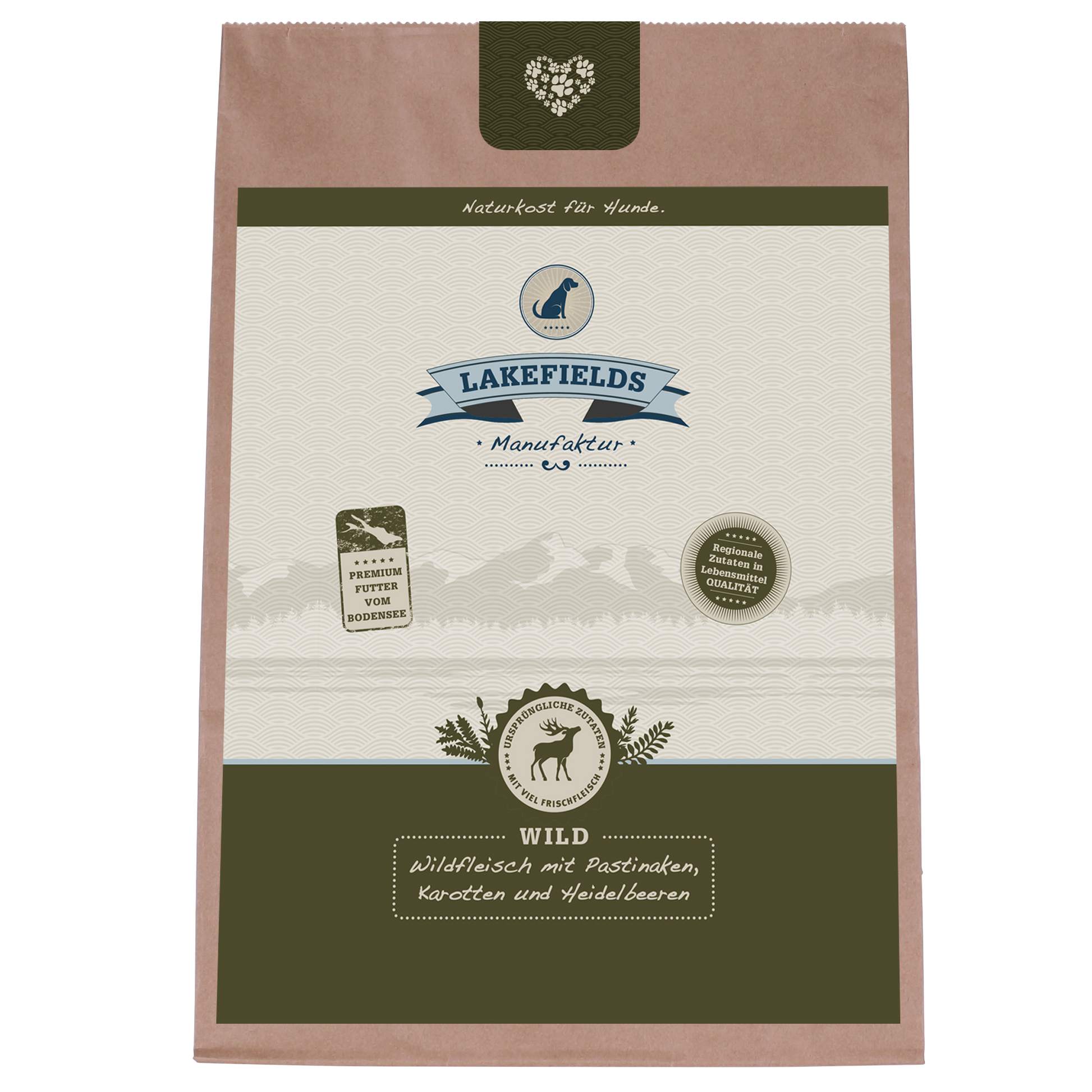 Unser Trockenfutter Wild enthält 68% Fleisch und Innereien ausschließlich von einheimischen Hirschen und Rehen. Tierische Bestandteile anderer Wildtiere werden nicht verarbeitet. Daher ist unser Futter mit Wild eine besondere Delikatesse. Weitere hochwertige Zutaten wie Birne, Pastinaken und Rote Bete runden das vollwertige Menü, das wir traditionell im Steinofen backen, ideal ab.